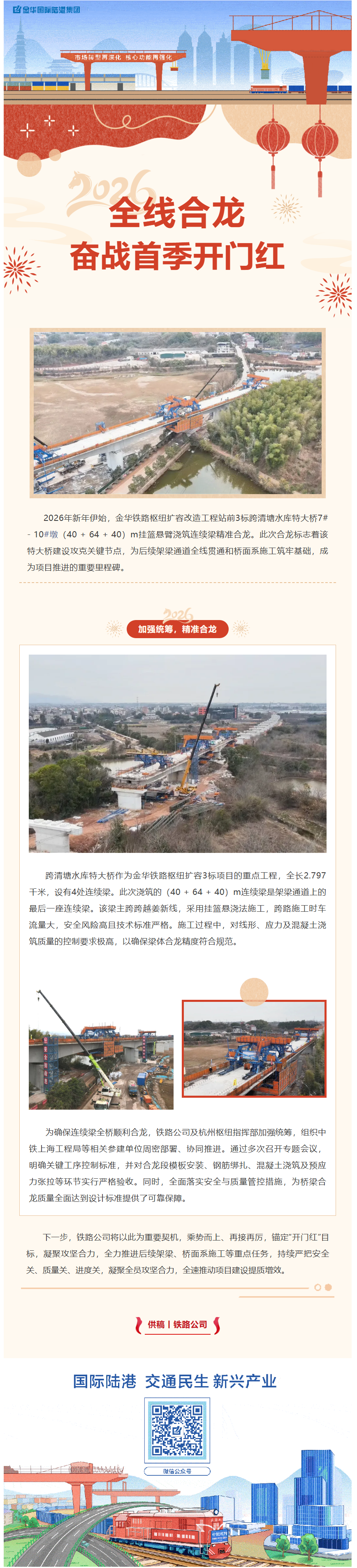 金華鐵路樞紐3標 跨清塘水庫特大橋連續(xù)梁全線合龍